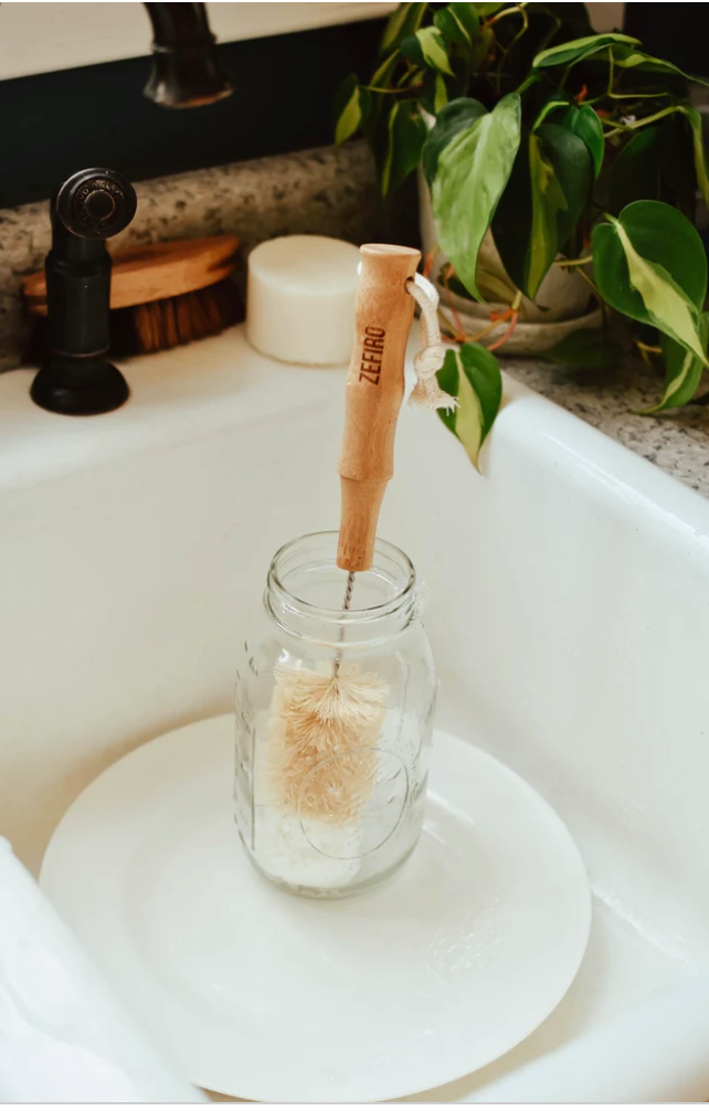 The handle is made from sustainable bamboo and this brush has rough, plant-based sisal fibre bristles. Perfect for getting into coffee mugs, wine glasses, jars and bottles.