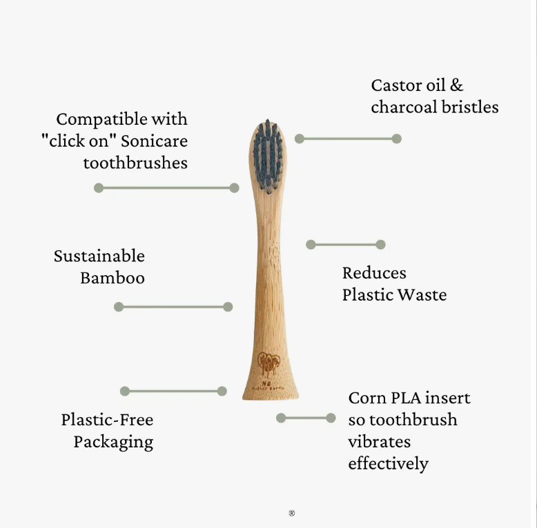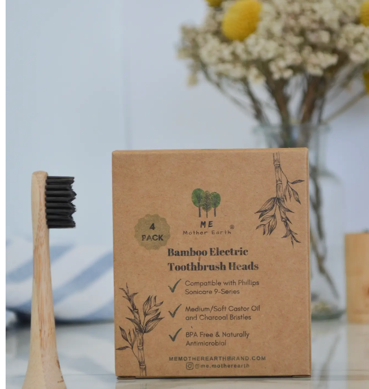 The best bamboo electric toothbrush heads have medium/soft bristles made from castor bean oil and blended with charcoal. These refill heads fit most Phillips Sonicare electric toothbrush models.