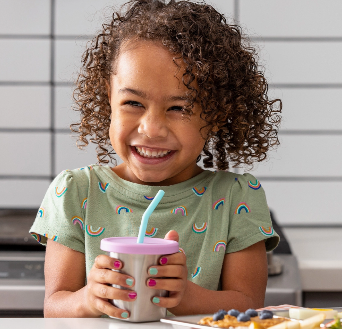This stainless steel cup quickly becomes a straw cup with the lid set. Take the straw out and plug the hole for an on the go snack cup!