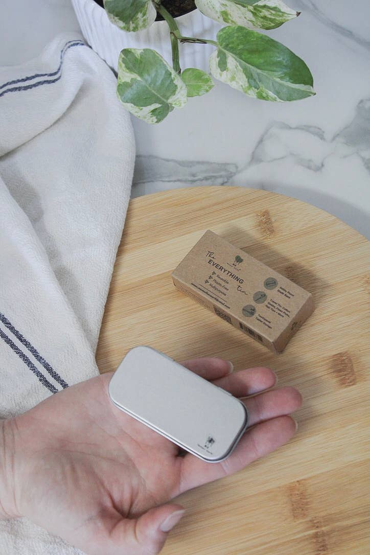Made from 100% recyclable tin + packaged without plastic. Packaging: Kraft paper box.